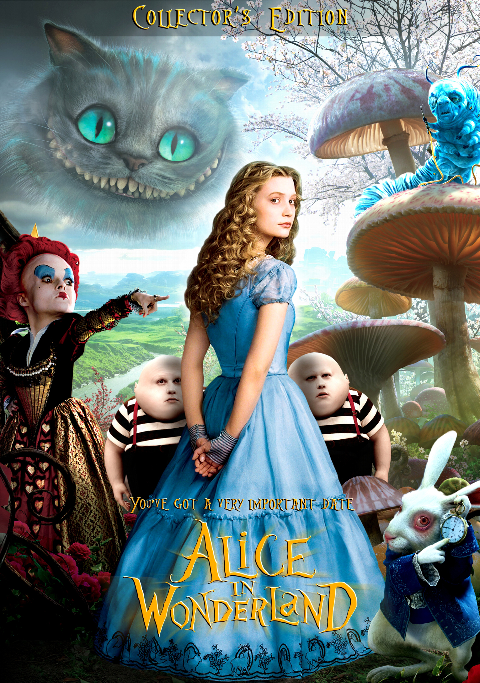 Alice in Wonderland (2010) : 2010 yılına ait animasyon filmi Walt Disney Pictures tarafından servis edilen ve yine Tim Burton tarafından yönetilmiş ve Linda Woolverton tarafından yazılan bir senaryoya sahiptir. Orijinal Alis Harikalar Diyarının devamı niteliği gibi düşünülmelidir. Bu orijinal yapım için yazıma link bırakıverdim, bak istersen… Amerikan İngiliz yapımıdır. Film, 113 dakika sürer. Oyuncular; Mia Wasikowska, Johnny Depp, Helena Bonham Carter. 12 ödül dahil, 2 Oscar, 2 BAFTA galibiyeti , 45 adaylık kazanmış. 3’lemenin 2.filmi.