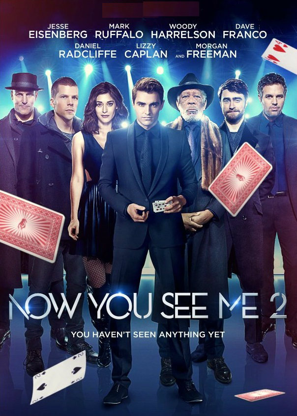 Now You See Me 2 (2016) : (Orijinal film adı Now You See Me: The Second Act) Yönetmen Jon M. Chu, senaryo yazarı Ed Solomon, Peter Chiarelli ile beraber yazdığı hikayeden uyarlamadır. Amerikan Meksika Fransa Hong Kong ortak yapımıdır. Eser, soygun gerilim filmidir . Now You See Me (2013) filminin devam niteliğinde, Now You See Me film serisinin ikinci filmidir. Oyuncular Jesse Eisenberg, Mark Ruffalo, Woody Harrelson, Dave Franco, Daniel Radcliffe, Lizzy Caplan, Jay Chou, Sanaa Lathan, Michael Caine ve Morgan Freeman. Film 129 dakika sürer.