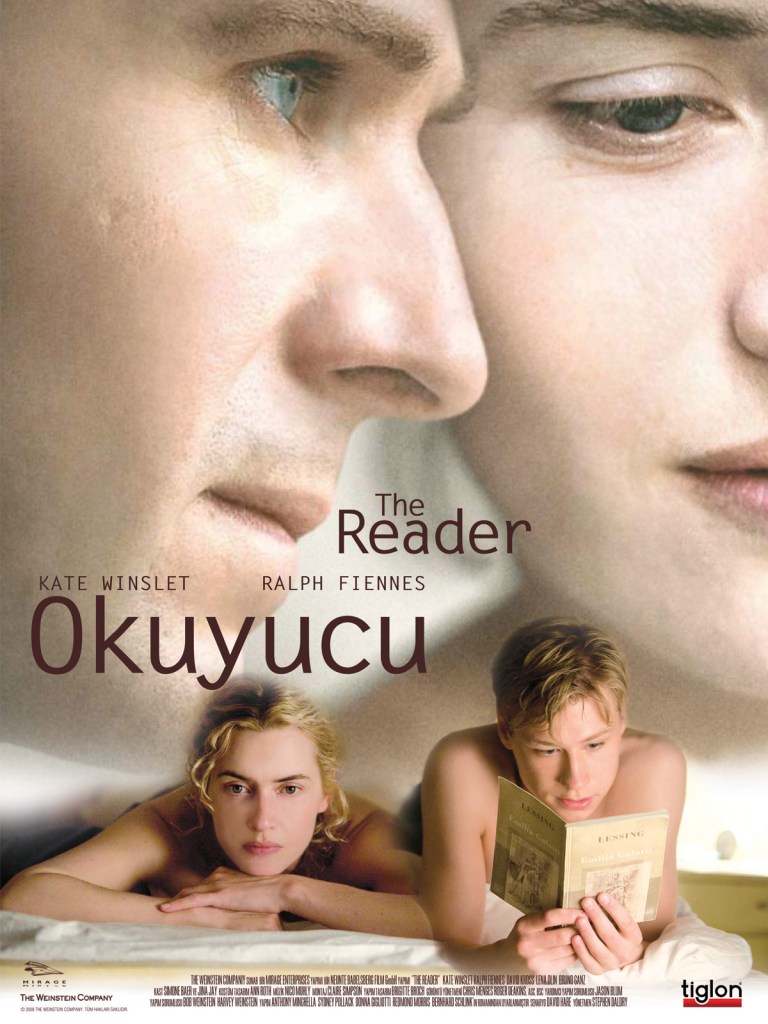 The Reader (2008) : Yönetmen Stephen Daldry, senarist David Hare. Yazar Bernhard Schlink tarafından The Reader 1995 Almanya’da yayınlanan romanından uyarlamadır. Bu Romantik drama filmi ile Oscar, Bafta, Altın Küre, Satellite ve Mtv ödüllerini kazanan Kate Winslet, başrolde oynuyor. Diğer oyuncular Ralph Fiennes, David Kross. Alman Amerikan ortak yapımıdır ve 124 dakika sürer. Eser, 1 Oscar, Bafta, Altın Küre dahil 26 galibiyet, 48 adaylık kazandı.